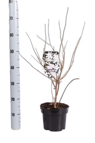 Die Magnolia stellata ist eine kompakt wachsende, sehr früh blühende Magnolie mit zahlreichen sternförmigen, weissen bis zart rosafarbenen Blüten, die bereits im zeitigen Frühling vor dem Blattaustrieb erscheinen. Die filigranen, schmalen Blütenblätter verleihen der Pflanze eine besonders elegante, fast schwebende Wirkung.