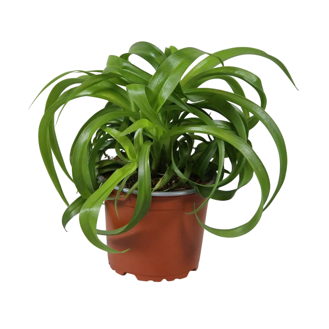 Die Chlorophytum comosum Green Bonnie ist eine kompakte, besonders dekorative Variante der klassischen Grünlilie. Ihre schmalen, sattgrünen Blätter wachsen in dicht gelockten, schwungvollen Bögen und verleihen der Pflanze eine lebendige, moderne Ausstrahlung.