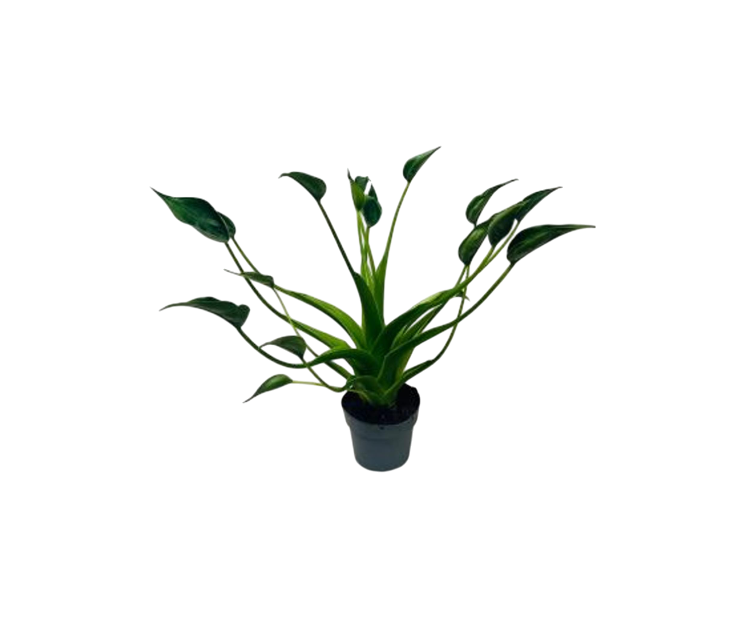Die Alocasia Tiny Dancer ist eine aussergewöhnliche und verspielte Alokasie mit schmalen, leicht nach oben gebogenen Blättern, die an feinen, aufrechten Stielen sitzen. Ihre kompakte Wuchsform und die elegante Blattstellung erinnern an eine tanzende Bewegung, was ihr den Namen Tiny Dancer verleiht.