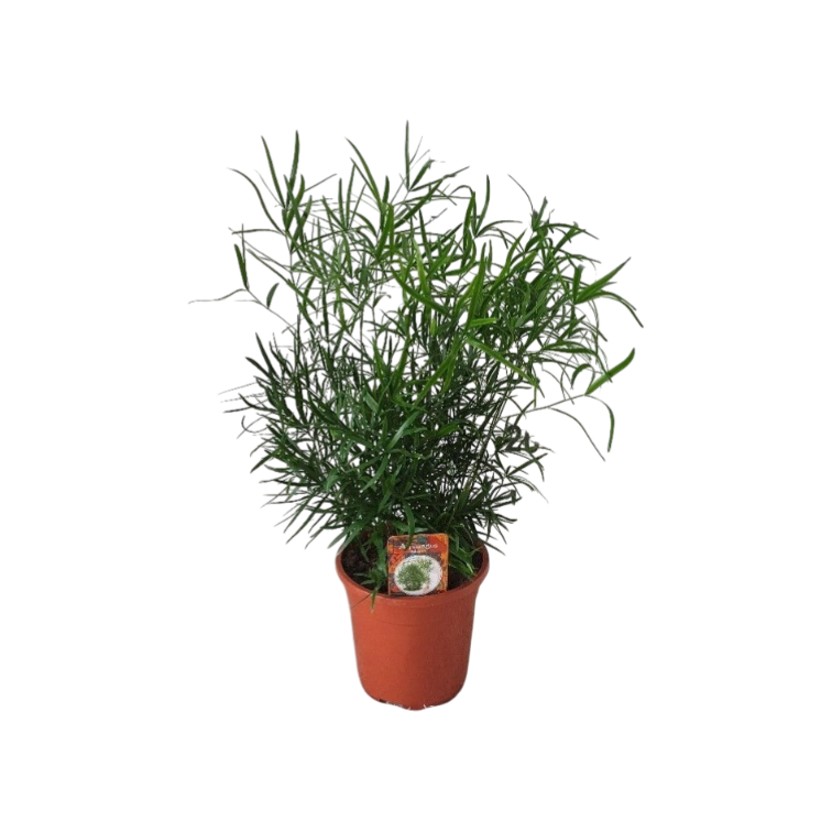 Der Asparagus falcatus ist eine robuste, dekorative Grünpflanze mit kräftigen, leicht verholzenden Trieben und sichelförmig gebogenen, glänzend grünen Blättern. Sein dichter, leicht rankender Wuchs verleiht ihm eine lebendige, natürliche Ausstrahlung.