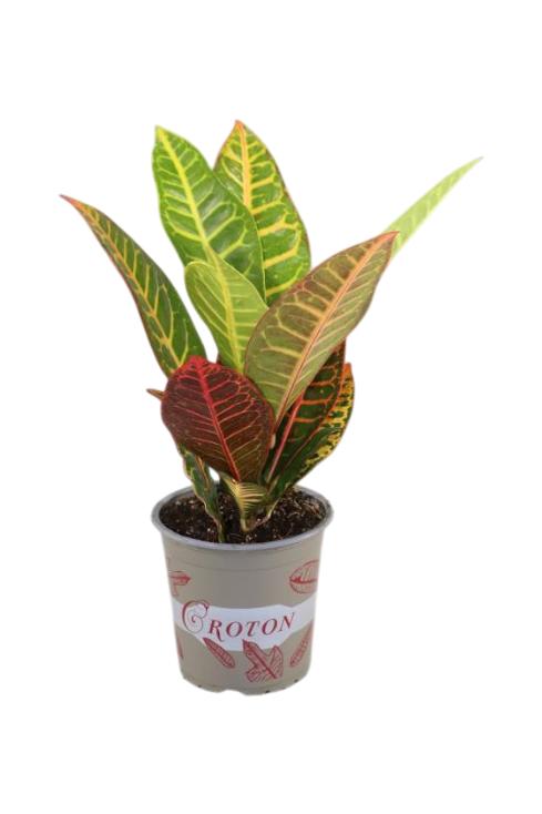 Der Codiaeum variegatum Petra, auch bekannt als Croton Petra, gehört zur Familie der Wolfsmilchgewächse (Euphorbiaceae). Ursprünglich stammt er aus den tropischen Regionen Südostasiens und Ozeaniens. Mit seinen leuchtend bunten Blättern in Grün, Gelb, Orange und Rot gehört er zu den farbenprächtigsten Zimmerpflanzen überhaupt.