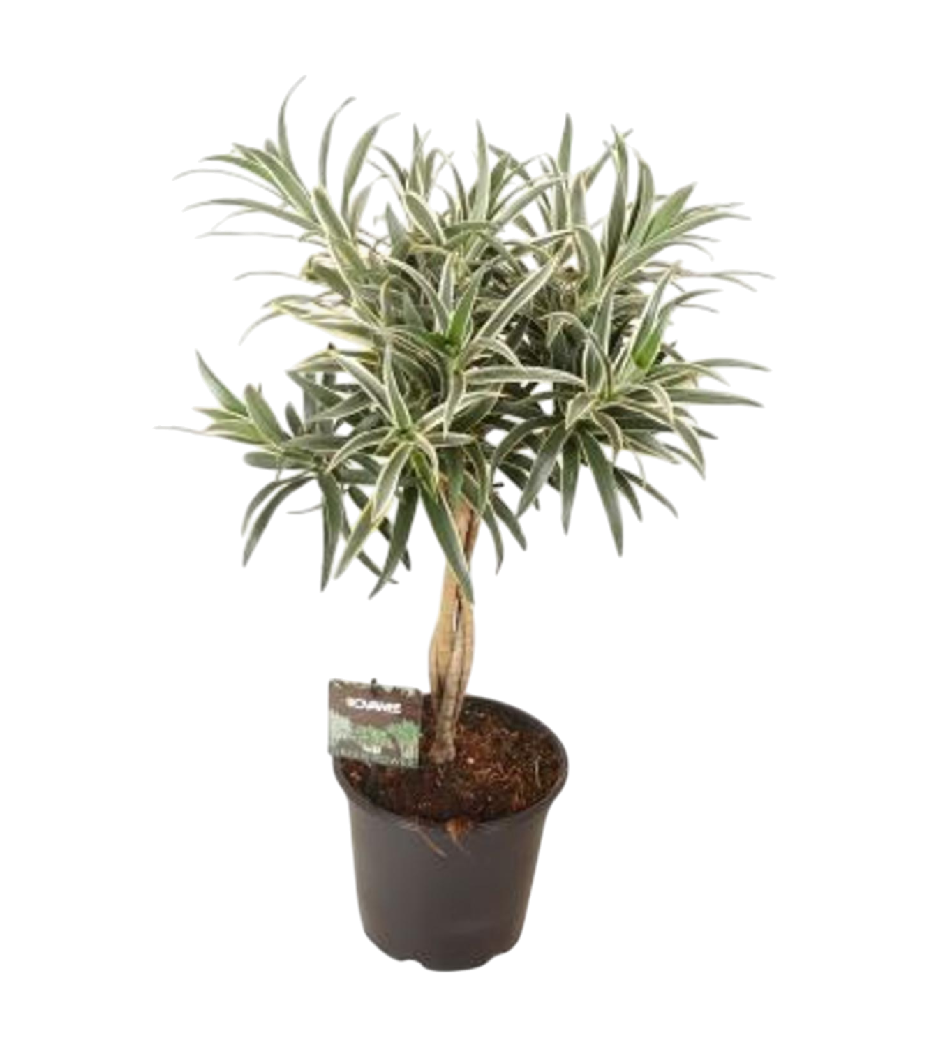 Die Dracaena reflexa Valentina mit geflochtenem Stamm ist eine elegante, pflegeleichte Zimmerpflanze mit schmalen, lanzettlichen Blättern, die durch ihre hellgrüne bis cremefarbene Panaschierung besonders frisch wirkt. Der kunstvoll geflochtene Stamm verleiht der Pflanze eine hochwertige, dekorative Note und macht sie zu einem stilvollen Blickfang.
