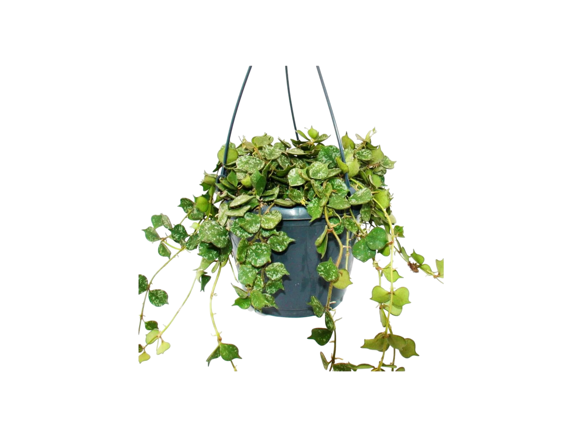 Die Hoya curtisii ist eine feine, langsam wachsende Hängepflanze mit kleinen, herzförmig-ovalen Blättern, die eine silbrig-grün gesprenkelte Zeichnung aufweisen. Die dicht verzweigten, überhängenden Triebe verleihen ihr eine besonders zarte, elegante Optik.